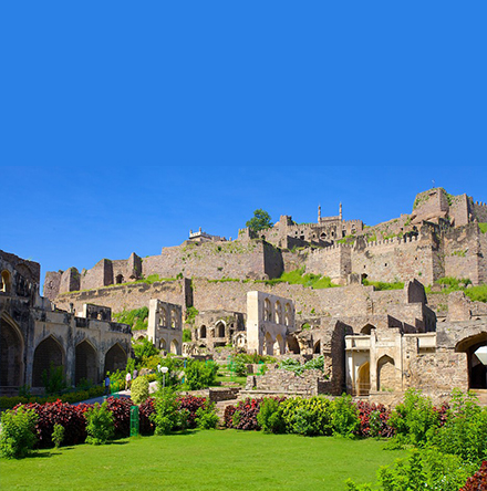 Golconda is one of the famous forts of India. The name originates from the Telugu words "Golla Konda" meaning "Shepherd's Hill". The origins of the fort can be traced back to the Yadava dynasty of Deogiri and the Kakatiyas of Warangal. Golconda was originally a mud fort, which passed to the Bahmani dynasty and later to the Qutb Shahis, who held it from 1518 to 1687 A.D. The first three Qutb Shahi kings rebuilt Golconda, over a span of 62 years. The fort is famous for its acoustics, palaces, ingenious water supply system and the famous Fateh Rahben gun, one of the cannons used in the last siege of Golconda by Aurangzeb, to whom the fort ultimately fell. Sound & Light Show at Golconda Fort: The glorious past of Golconda Fort is narrated effectively with matchless Sound and Light effects. The unique Sound & Light Show takes you right back in time, when Golconda was full of life, glory and grandeur.